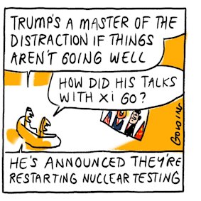 Justo antes de que Trump entrara a la reunión en Busan, al margen de la cumbre de APEC en la cercana Gyeongju, declaró en las redes sociales que había ordenado a Estados Unidos reiniciar las pruebas de armas nucleares, después de que Rusia anunciara pruebas de un dron submarino de propulsión nuclear y un misil de crucero con capacidad nuclear.